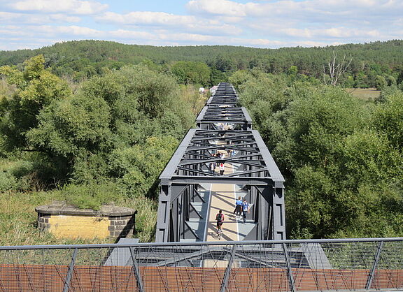 Die ehemalige Eisenbahnbrücke über die Oder zwischen Siekierki-Neurüdnitz wurde für Radfahrende hergerichtet und ist seit Juni 2022 geöffnet. Anlass für ein deutsch-polnisches Europafest am 3. September, das wir mit zwei Fahrradgruppen besuchten.